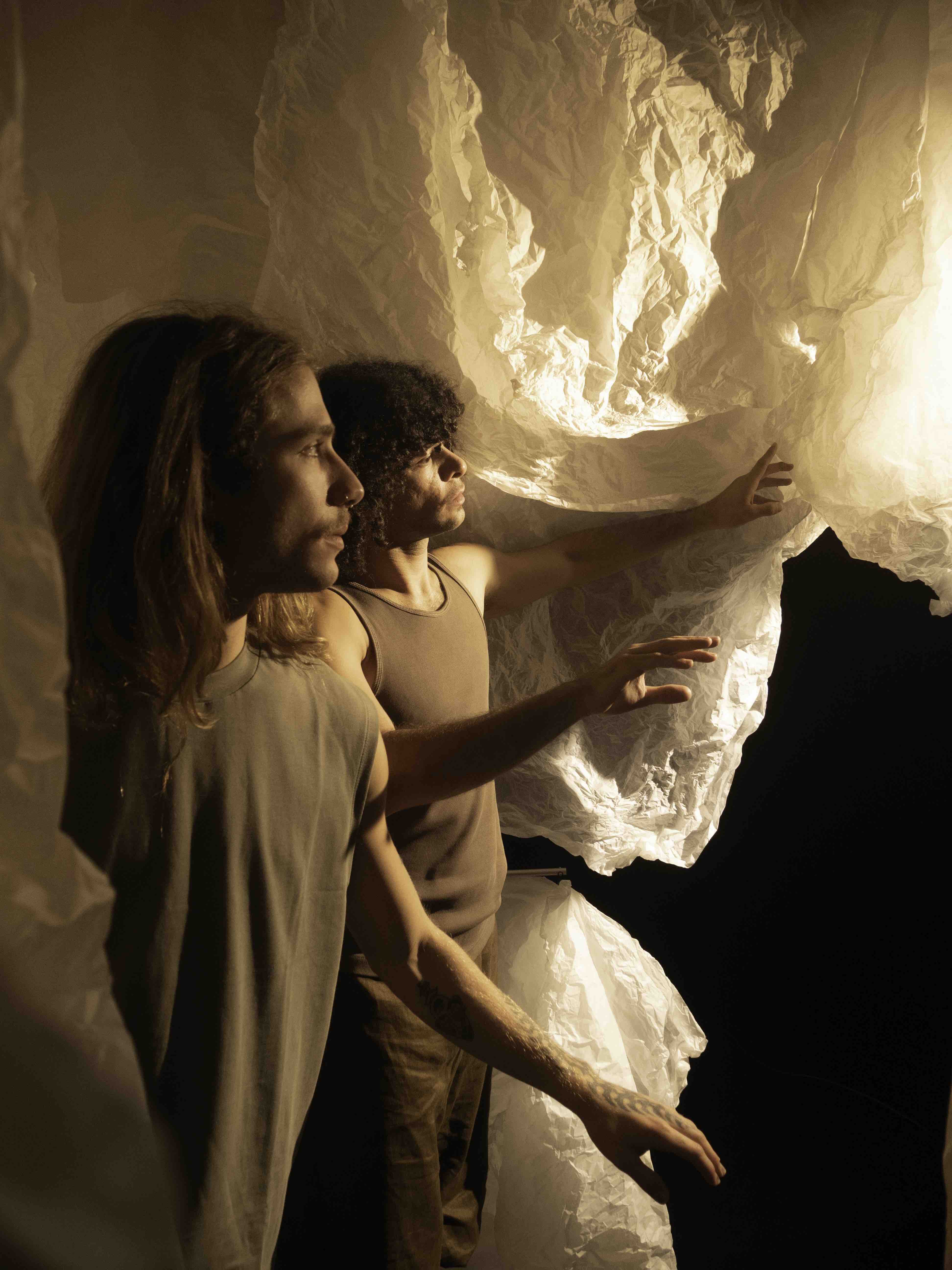 Ehab is Palestinian, Ben is Israeli. Together with Fabian Cohn, they created a dance piece – right now, despite everything. In the performance space hangs a vast cloud-like structure: a projection surface for expectations, assumptions, and the weight of an ever-present conflict. Two people move within and alongside this cloud. Two who are constantly confronted with questions of identity and belonging. People with stories who listen to each other. People we, too, can listen to.